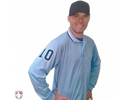 - Typically for use on powder blue umpire shirts with navy and white trim or navy umpire jackets with powder blue and white trim.